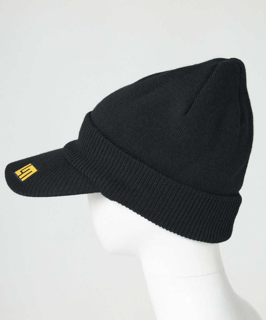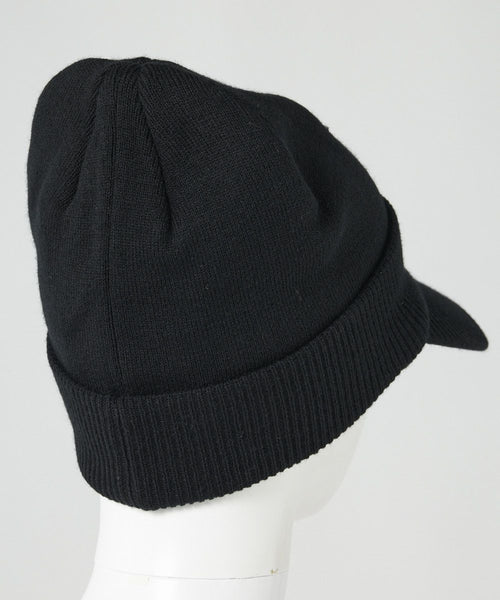 ニット編みで温かみのあるつば付きニットキャプです。